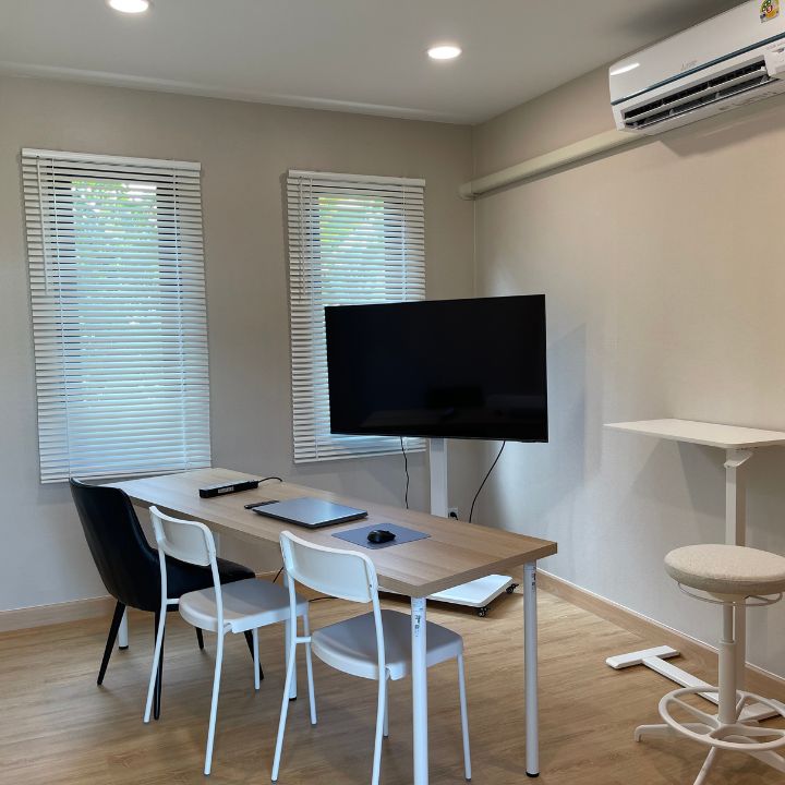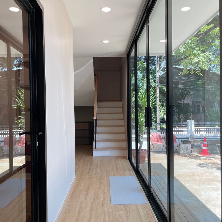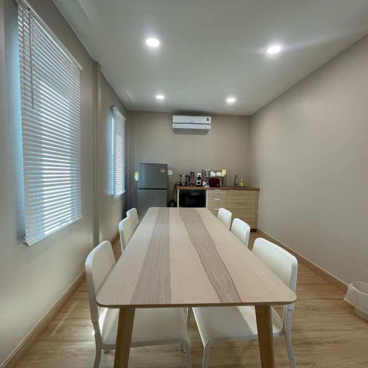 ออฟฟิศสำเร็จรูป 2 ชั้นสไตล์โมเดิร์นหลังนี้ถูกสร้างขึ้นด้วยแนวคิด “ใช้งานจริงในทุกพื้นที่” ชั้นล่างออกแบบเป็นห้องโถงขนาดใหญ่ รองรับการใช้งานทั้งเป็นพื้นที่ต้อนรับลูกค้า โซนประชุม หรือพื้นที่ทำงานรวม ส่วนชั้นบนเป็นโซนทำงานแบบส่วนตัวมากขึ้น เหมาะสำหรับผู้บริหารหรือทีมที่ต้องการสมาธิ และยังมีพื้นที่อเนกประสงค์ที่สามารถปรับฟังก์ชันได้ตามรูปแบบธุรกิจ