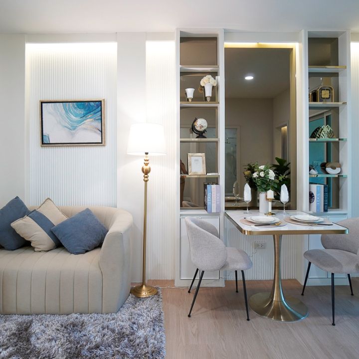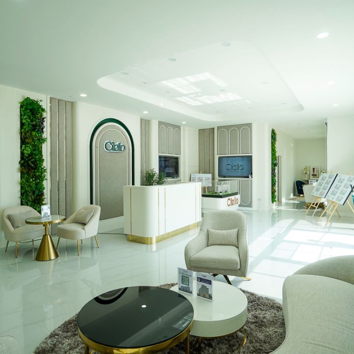 ภายนอกออกแบบเส้นสายโค้งทรงยุโรป เรียบหรู สร้าง First Impression อย่างมีระดับ ให้ลูกค้าเห็นภาพลักษณ์ของแบรนด์ตั้งแต่แรกเข้า พื้นที่ใช้สอยโปร่งด้วยหน้าต่างกระจกสูงรอบอาคาร เพิ่มแสงธรรมชาติและบรรยากาศที่เป็นมืออาชีพ รองรับจำนวนผู้เข้าเยี่ยมชมได้พร้อมกันหลายกลุ่ม เหมาะกับผู้พัฒนาโครงการอสังหาฯ ที่ต้องการอาคารสำเร็จรูปสำหรับใช้งานจริงทันที