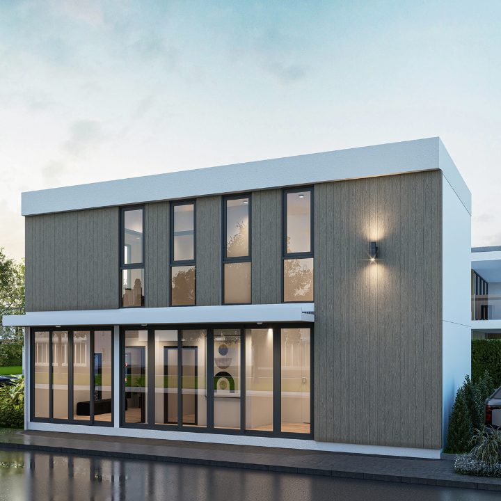 บ้านพักน็อคดาวน์ทรงโมเดิร์น เน้นดีไซน์เรียบหรู เส้นสายคมชัด ใช้วัสดุคุณภาพสูง แข็งแรงและทันสมัย เหมาะทั้งเป็นบ้านพักอาศัยและบ้านพักสำเร็จรูปสำหรับปล่อยเช่า